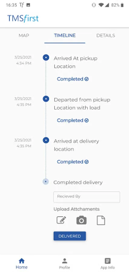 o Record Proof of Delivery by taking the receiver’s signature on the mobile device. Take picture of documents and upload.