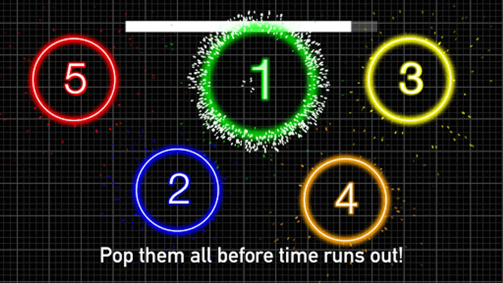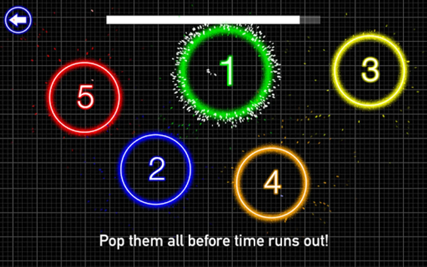 Glow Burst requires a sharp mind and a quick touch. Tap or swipe through the glowing numbers as fast as you can from least to greatest. Each glow burst earns you points and extra time. Complete a round to get even more bonus time. It sounds simple but be warned that it's very addicting!