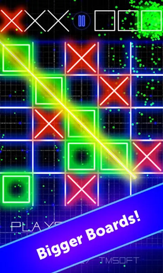 - Second, it includes bigger boards to play on than just the standard 3x3 grid. Take your gameplay to the next level with 5x5 and 7x7 boards. Go extreme.