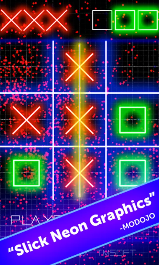 THE BEST TIC TAC TOE GAME EVER CREATED? WE THINK SO! - Explosions - Fireworks - Glowing Effects - One and Two Players - Classic 3x3 Board - Extreme 5x5 and 7x7 Boards - Awesome Computer AI - Cool Sounds and Music - Beautiful Graphics - Game Achievements