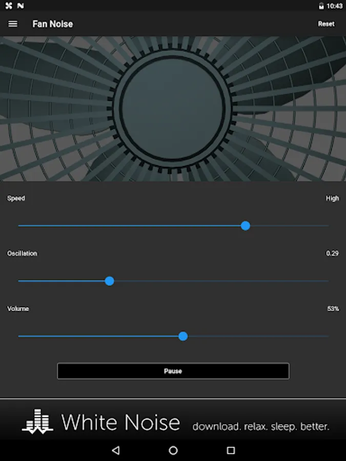 The Fan Noise Generator app is based on our most popular box fan sound, but adds speed and oscillation controls to make the sound completely unique. The Fan Noise Generator app is great for travel as you won’t need to bring a bulky fan with you, but it’s also perfect for home-use as it sounds completely realistic. The Fan Noise Generator running on a mobile device doesn’t consume as much power as using a mechanical fan so you'll save money on your electricity bill. Download the Fan Noise Generator and get to sleep fast!