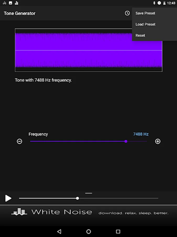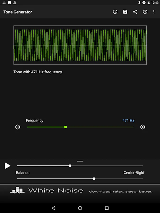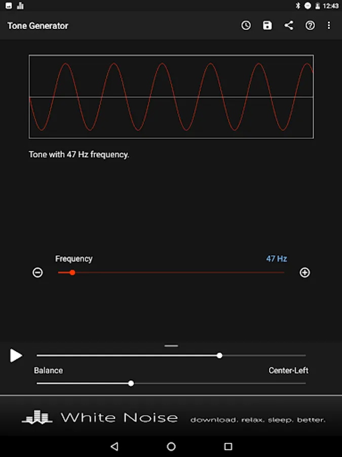 Generate pure sine wave tones at frequencies from 20hz to 22,000hz.  Tone generation is useful in tuning instruments, hearing tests, science experiments, and testing audio equipment.
