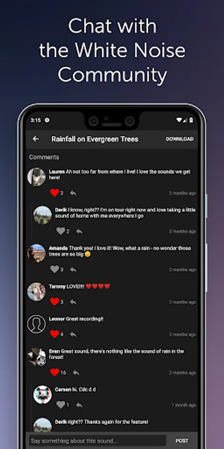 - Make friends by starting a conversation with other White Noise users. Heart and post comments about your favorite sounds and mixes.