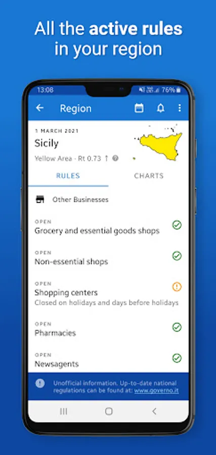 ➤ Consult the active rules in your region, including allowed or limited activities and open businesses.