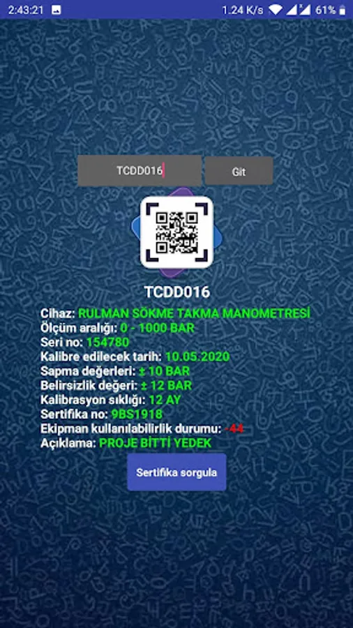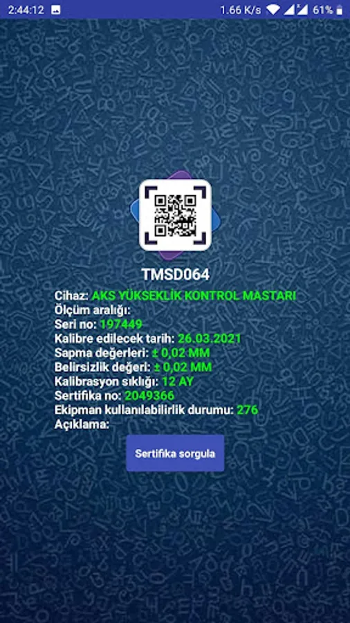 You can access updated calibration dates by scanning QR codes affixed to the equipment.