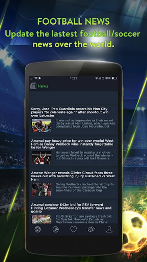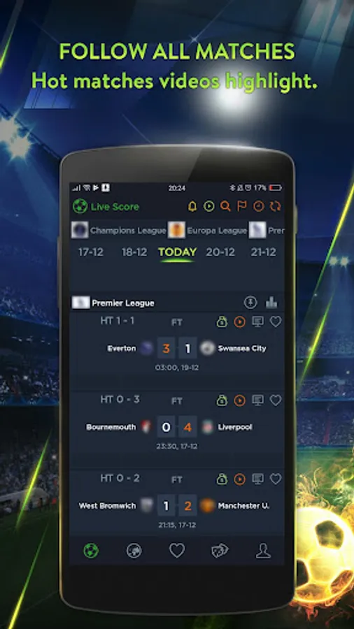 365 Football Soccer live scores enable you to follow, update scores of live football matches truely realtime including all the major leagues and tournaments in the world!