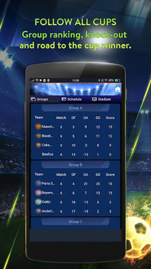 365 Football Soccer live scores provides top soccer leagues with functions: