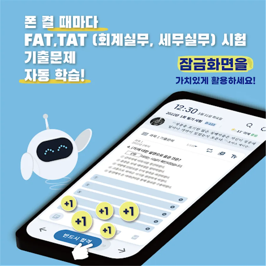 You can see the FAT, TAT (accounting practice, tax practice) flash learning card and previous questions automatically just by turning on the phone. If solving the problem is cumbersome, read it through and feel free to make any mistakes. It is a great help if you read the clear explanation and skip it just once.