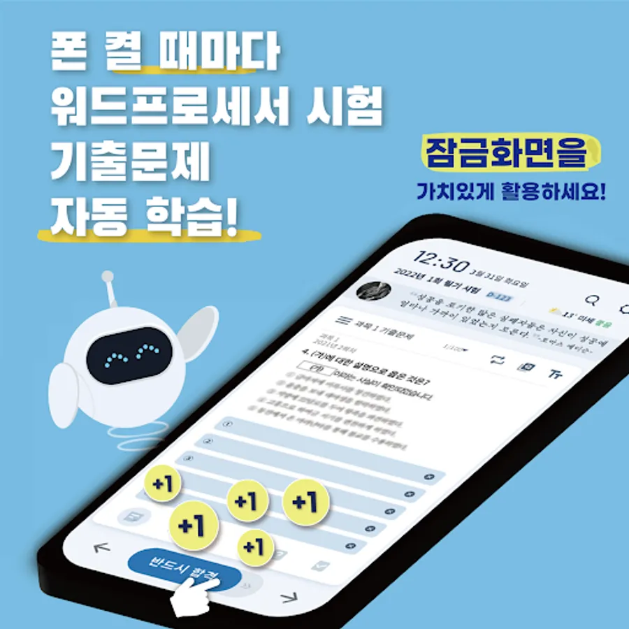 You can see the word processor flash learning card and previous questions automatically just by turning on the phone. If solving a problem is cumbersome, read it through and feel free to make any mistakes. It is a great help if you read the clear explanation and read it only once.