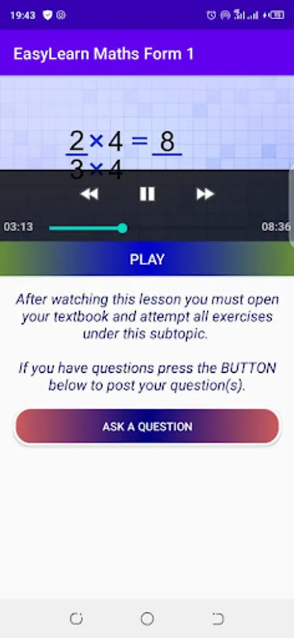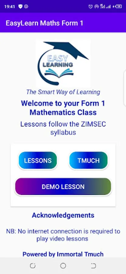 This App provides Form 1 Mathematics lessons (Zimsec) in video format giving students a classroom experience. The App ONLY uses data on registration and login. The video lessons do not require data to play and this explains why the App is a "Large" file to download. Students can ask questions directly from the App and get clarification on areas that they may have problems.