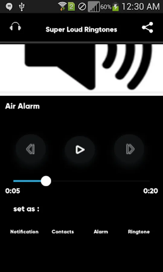 - options to set as: Ringtone - Notification and share with your friends