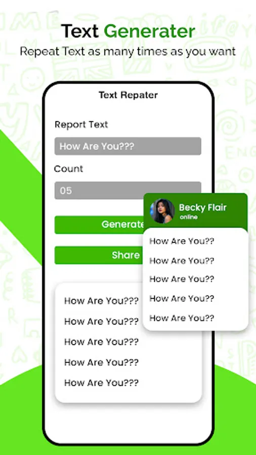 You can repeat the TM Whatzapp Lite messages multiple times in just one click and also share them with your friends.