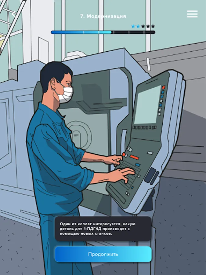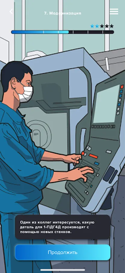 The story and each episode of the quest are tied to real objects, employees and tasks of the enterprise. Quests and events in history repeat the incidents that happened or immerse players in fictional situations, but which, in theory, could very well happen in the enterprise. Players interact with game models of real machines, workshops, stands, premises, products. They use real data for the solution.