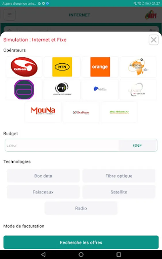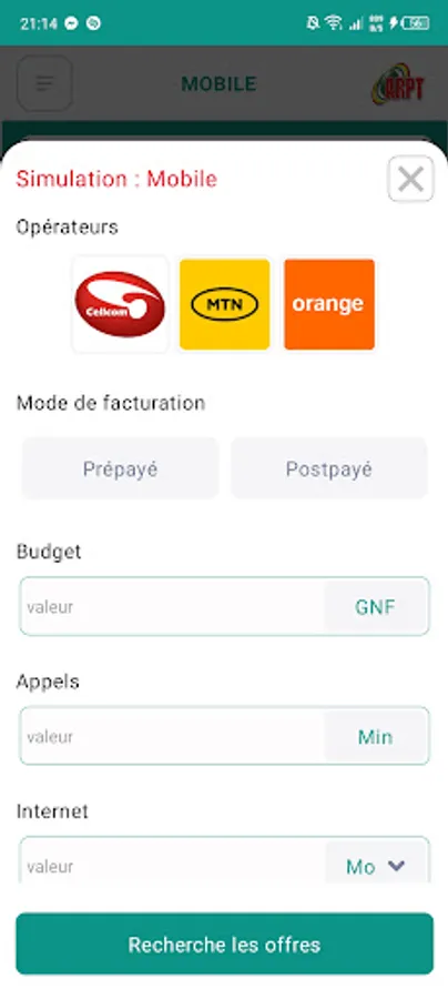 This tariff simulator by @SFM allows Internet users to simulate and compare the commercial offers of fixed and mobile operators in Guinea based on consumer inputs (Network types, billing method, budget, voice volume, SMS volume, volume of data).