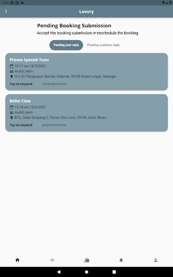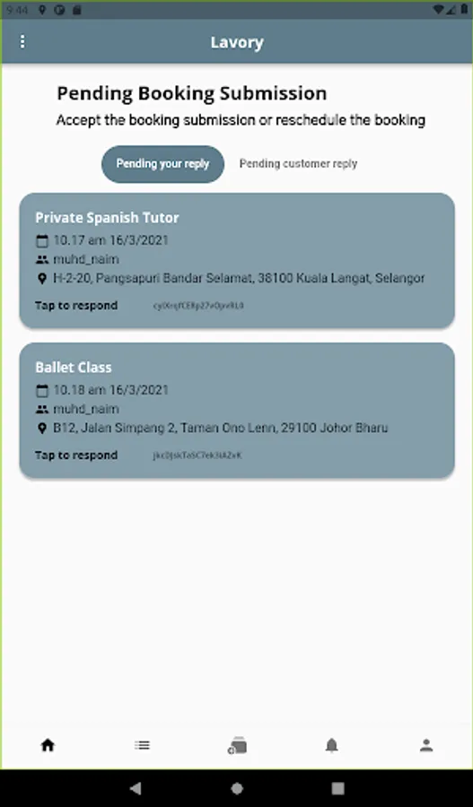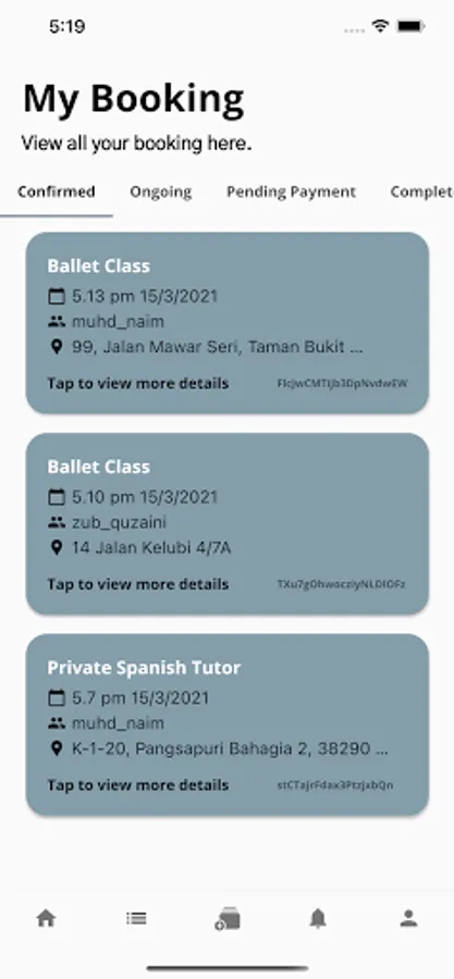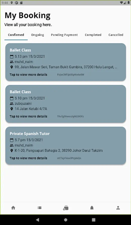 Keep up with your booking status directly with the users. Monitor booking status via My Booking.