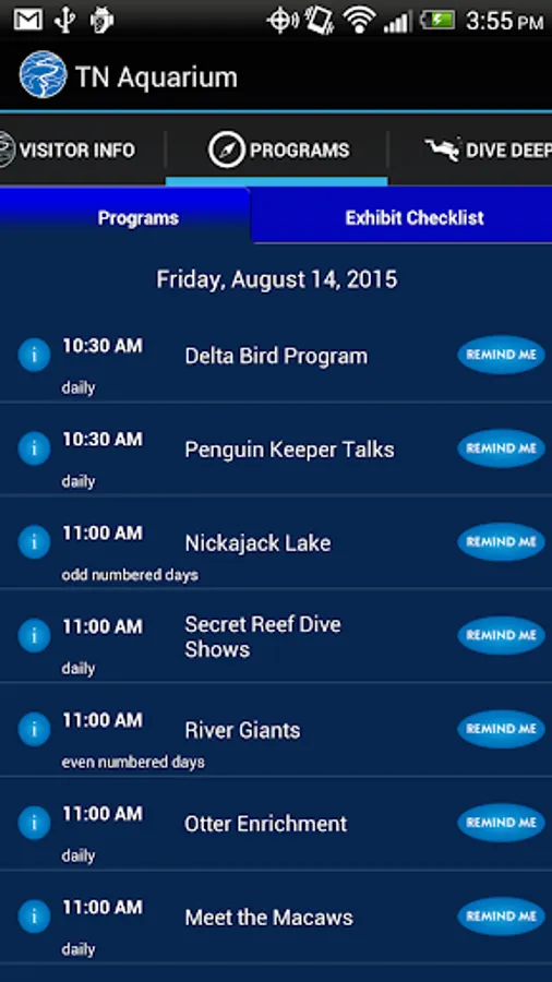 The Tennessee Aquarium's free App, powered by Tennessee Tech University, helps you plan your visit, make the most of your aquatic adventure and helps you share highlights with family and friends. And, we hope you’ll enjoy many of the App’s features after your visit.