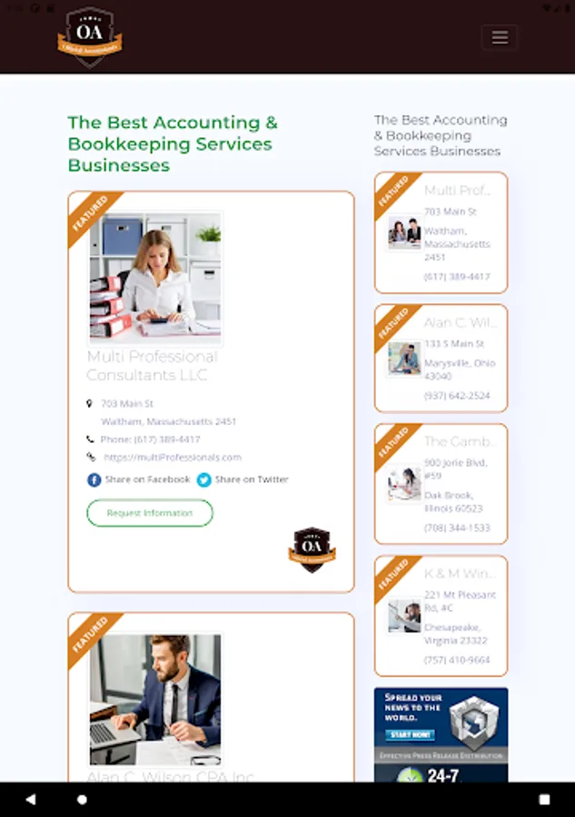 Official Accountants connects individuals and small business owners with the best accountants & bookkeepers in the world. We feature only the top CPAs, bookkeeping firms, accountants, and other financial professional service providers.