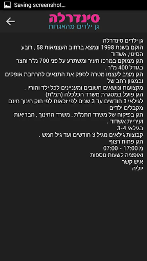 Garden Cinderella Ashdod gives you a parent application-friendly and fun to maintain direct contact with the garden, messaging horticultural and download updates from the garden, instant sharing of events in the Garden, and information for the calendar holidays, birthdays, what we did this week in the garden, the Sabbath, page experiences, Edit special events and parties, and more garden photos.