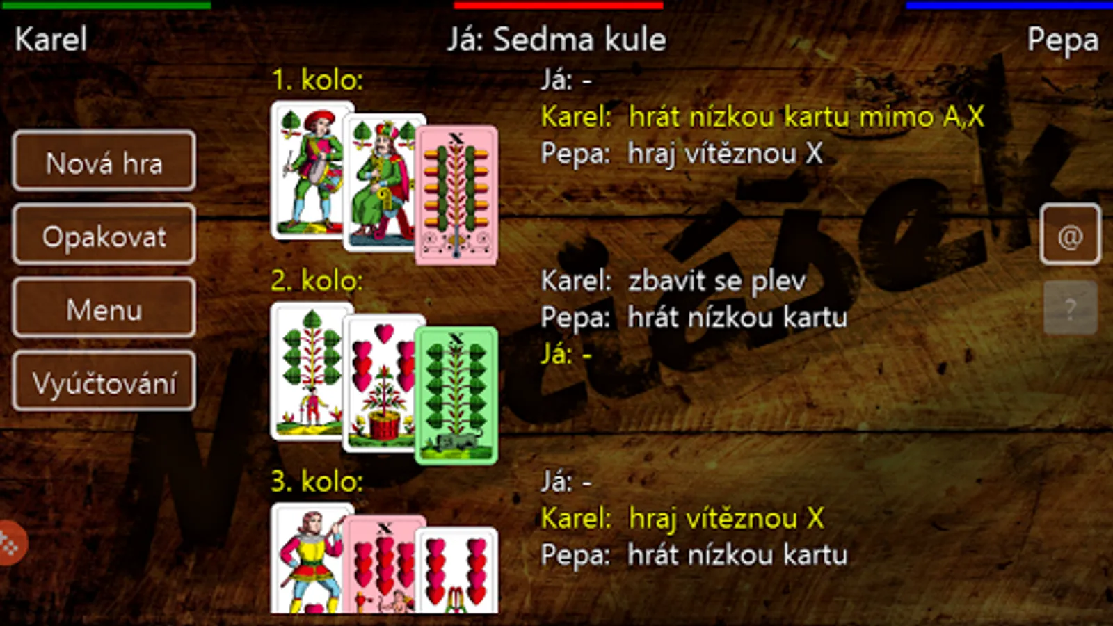 - Začátečníci ocení nápovědu / trenéra. Tlačítko s otazníkem Vás provede hrou od začátku do konce a poradí v každé fázi hry.