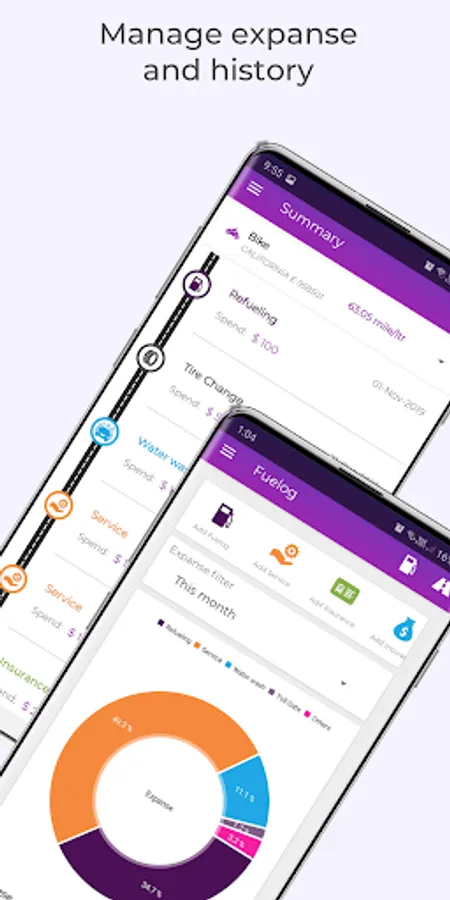 Mileage Calculator, expense manager, fuel log, fuel tracker, expense, reminder, insurance, service, car log, fuelog, gas log, car management, bike management, car care.