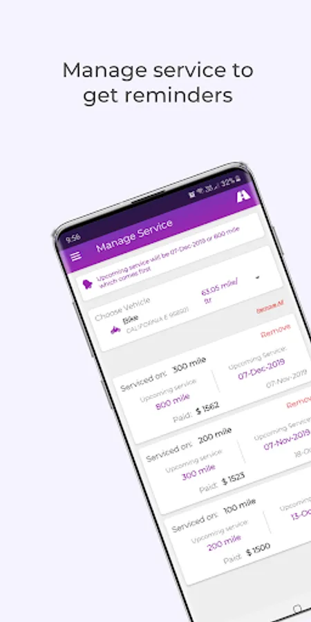 - Insurance Reminder - Get next service/insurance calculation.
