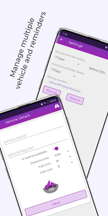 - Multiple Vehicle - Maintain more than one vehicle details.