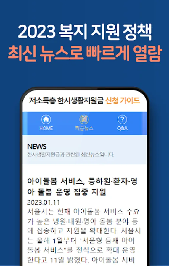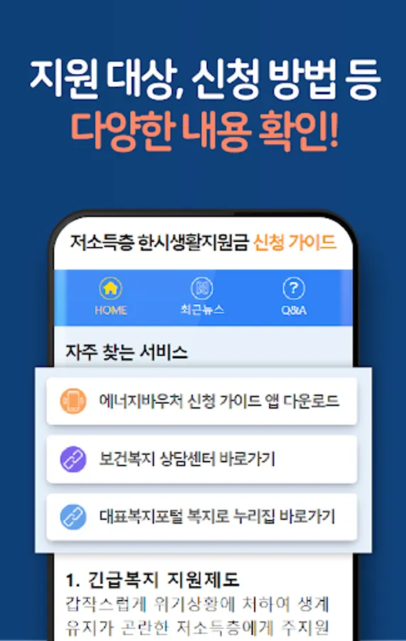 You can check all the contents and news about livelihood support welfare, such as low-income temporary living subsidy and emergency living subsidy, in one guide app for low-income temporary living subsidy application. Meet the news of welfare support in 2023 more quickly with the pop-up notification provided by the low-income temporary living subsidy application guide. Check out a variety of welfare-related information neatly with one app!