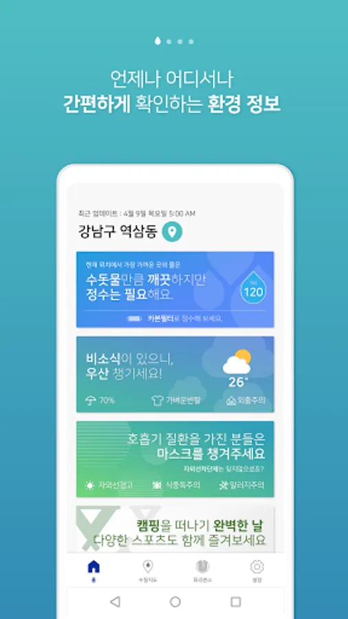 [Going out information]-Provides environmental information that affects going out, such as fine dust, ultra-fine dust, ultraviolet rays, and humidity.