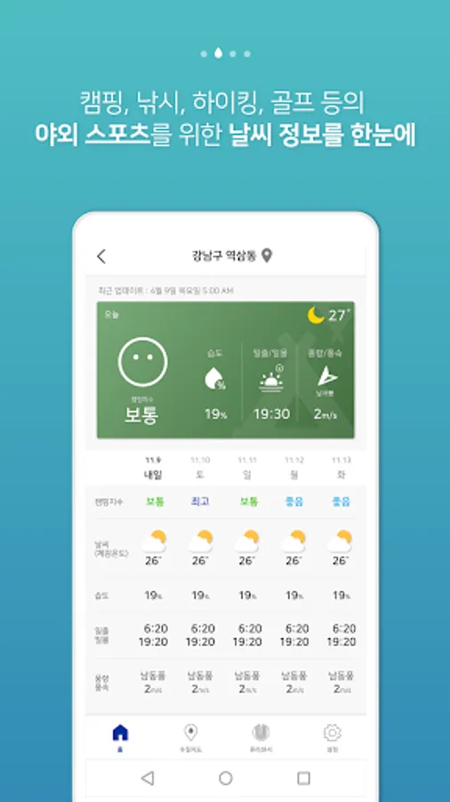 [Camping Information]-Camping index is guided based on various environmental information related to camping (weather forecast, wind direction/wind speed, humidity, etc.).