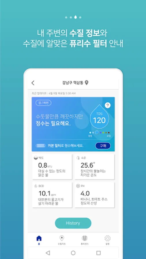 You can check various water quality information around me, such as rivers/rivers, tap water, and mineral springs. We also recommend a variety of Purisoo filters for various water qualities.