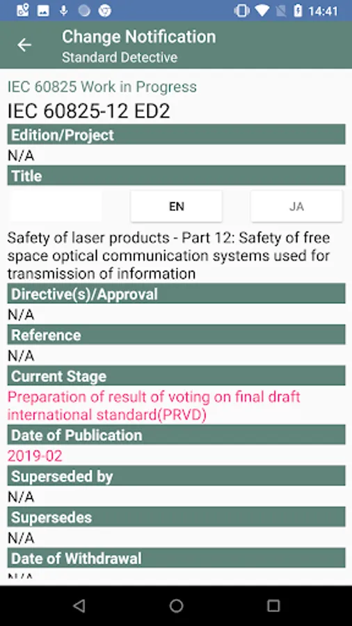 This application displays the issuance and deliberation status of standards provided by IEC. In addition, when new standard published, withdrawn or change of deliberation status occurs, the summary will be notified.
