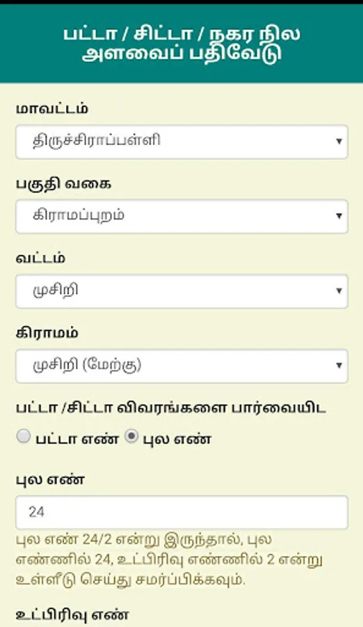 - நில உரிமை(பட்டா/சிட்டா) விவரங்களை சரிபார்க்க