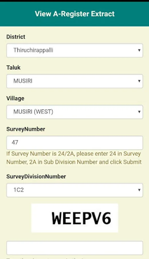 * Verify Web Issued Patta / A-Register Extract
