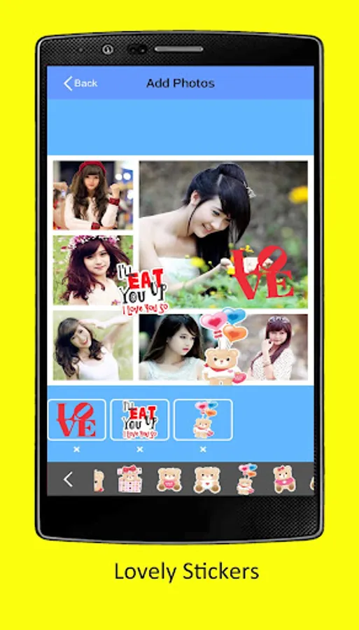 Collage is a great app that help you to make a beautiful and lovely photo collage. You can customize your collage by changing background, photo border and adding lovely sticker that make your photo collage more beautiful, more interesting.