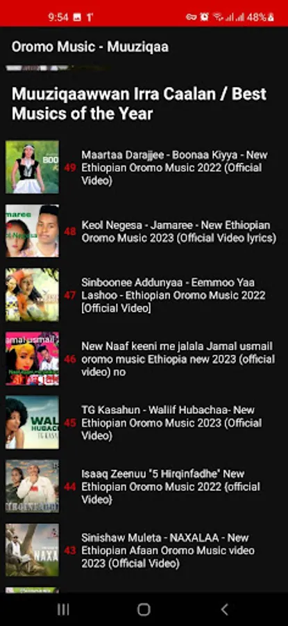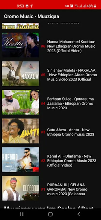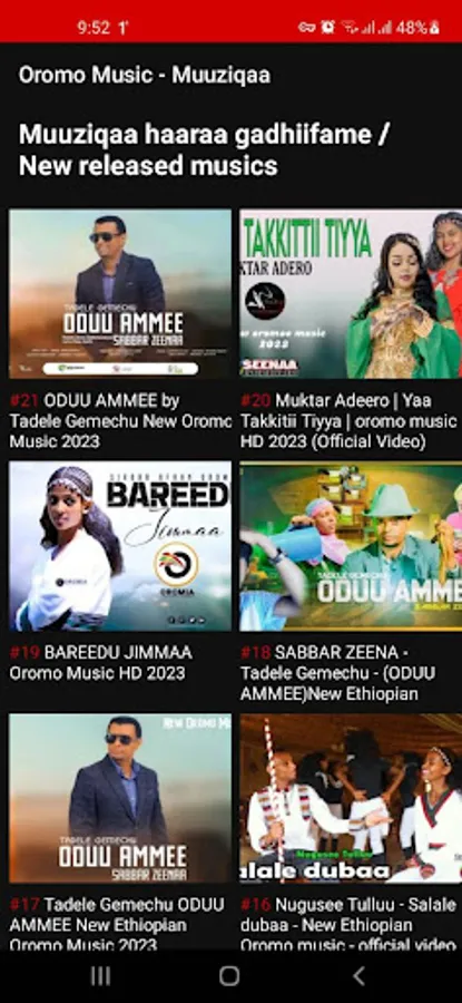 In this Oromo music app, you can discover a vast collection of the latest Oromo Music Videos. Get access to top selected weekly and monthly Music Videos, offering a variety of choices to suit your preferences. Additionally, the app provides much more beyond music videos. Explore the newly released Oromo Music Videos and enjoy the highest-rated ones, ensuring a premium listening experience.