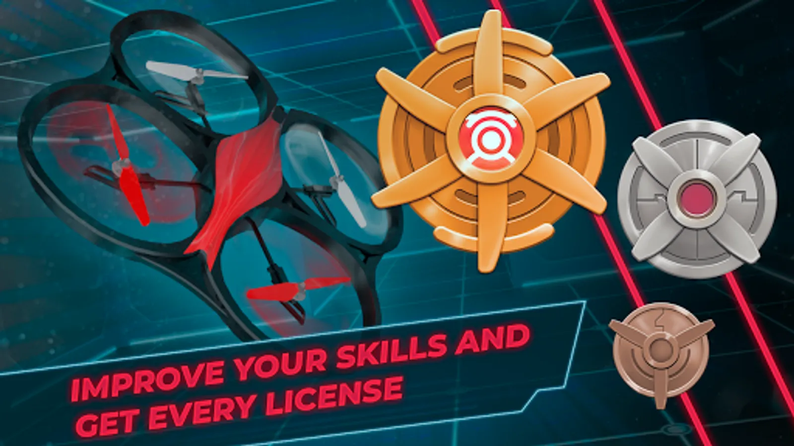 Compete in the daily and weekly tournaments to win big rewards with which to buy more drones and improvements. Two markers with independent leagues in which the best pilots will receive great prizes for being among the 3 best pilots of RC drones, the following up to the 10th position will receive a consolation prize and the rest ... to continue training to be better pilots and Expand your flight skills!