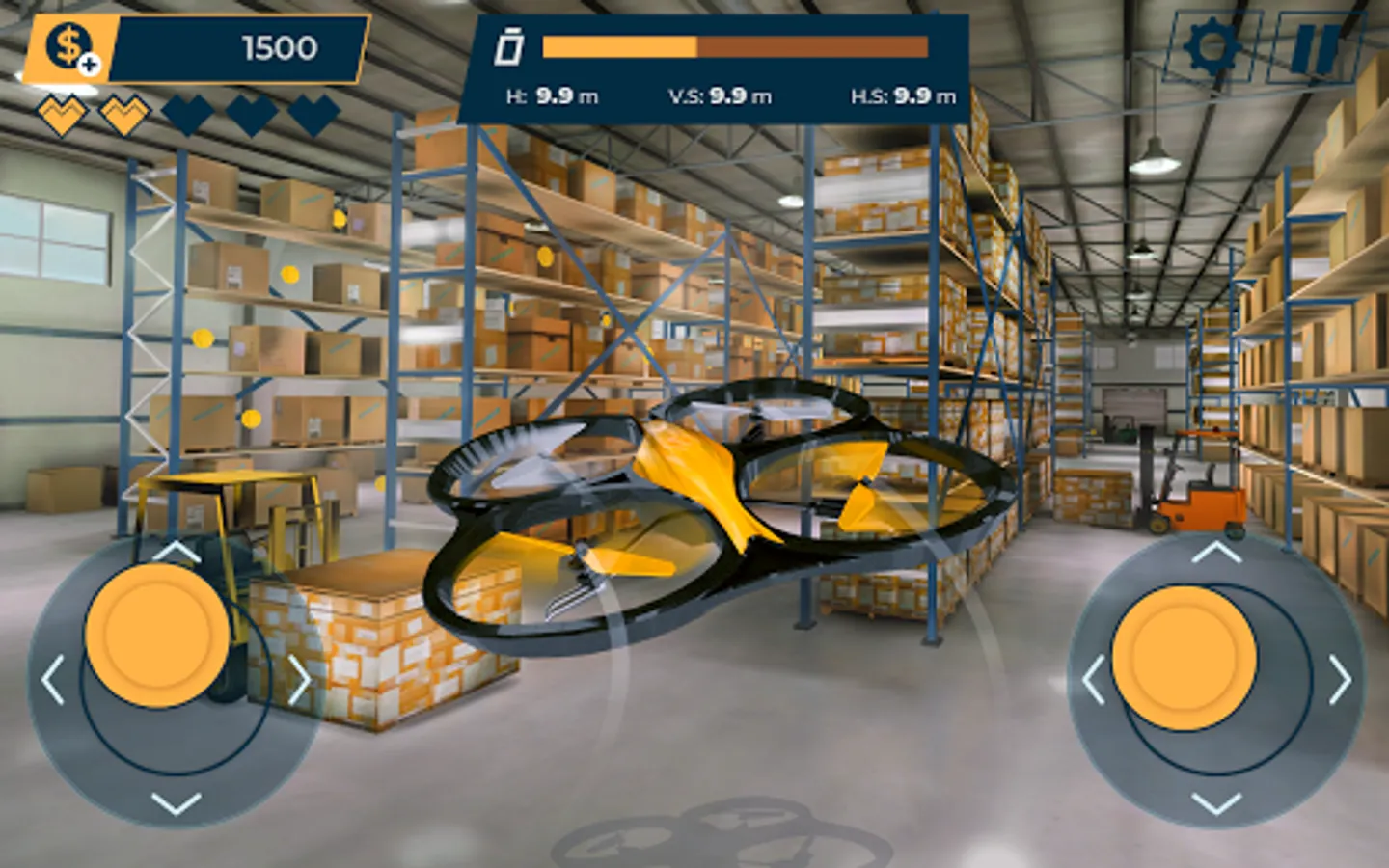 - Control the parameters of your drone with a flight information interface as in real drone. Battery, flight height, vertical speed and horizontal speed are displayed on the screen to make flight simulator more realistic.
