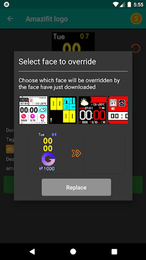 Application support for downloading and applying a new watch face to your Cor, Cor2.