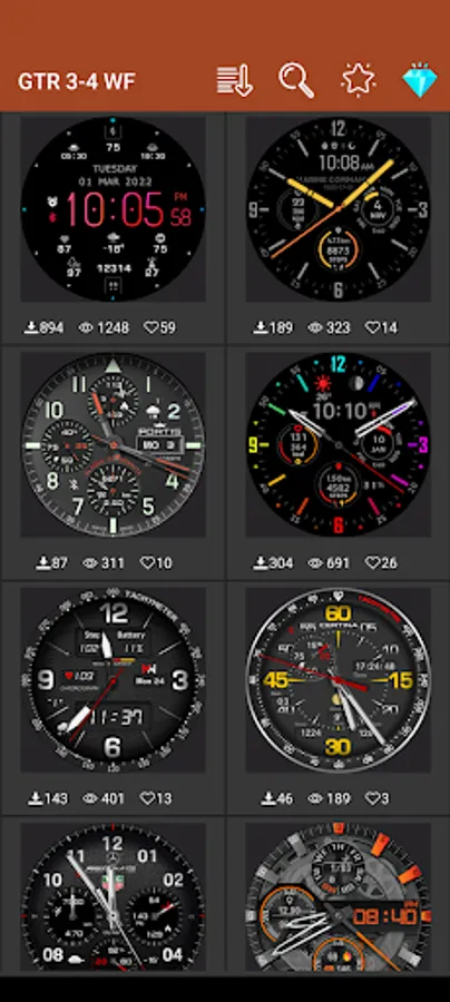 Users can download, add to favorites, search, filter, sorting watch faces.