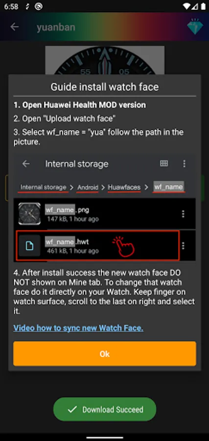 Guide how to install Health Mod version to be able to upload the new Watch Face and install it into Huawei Watch.