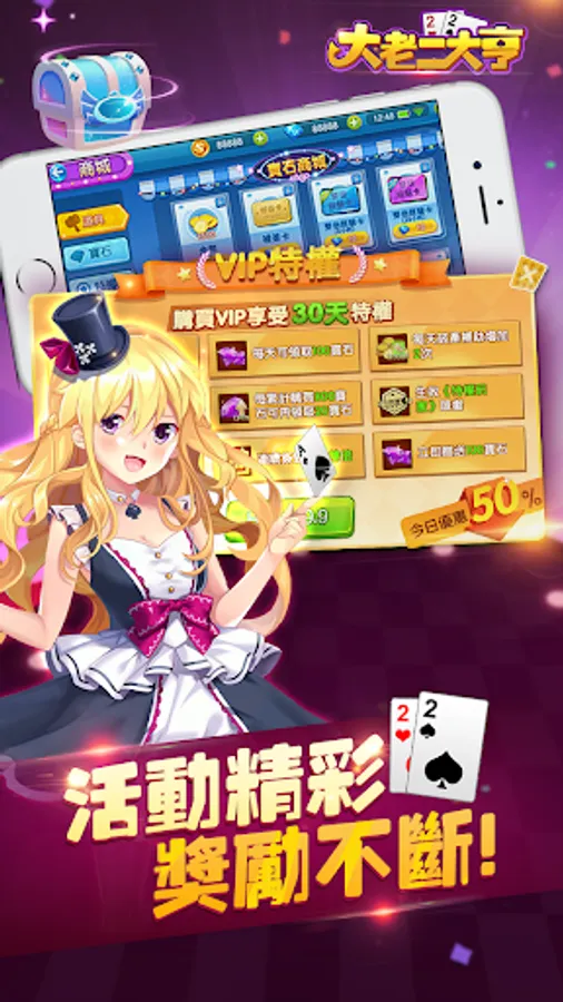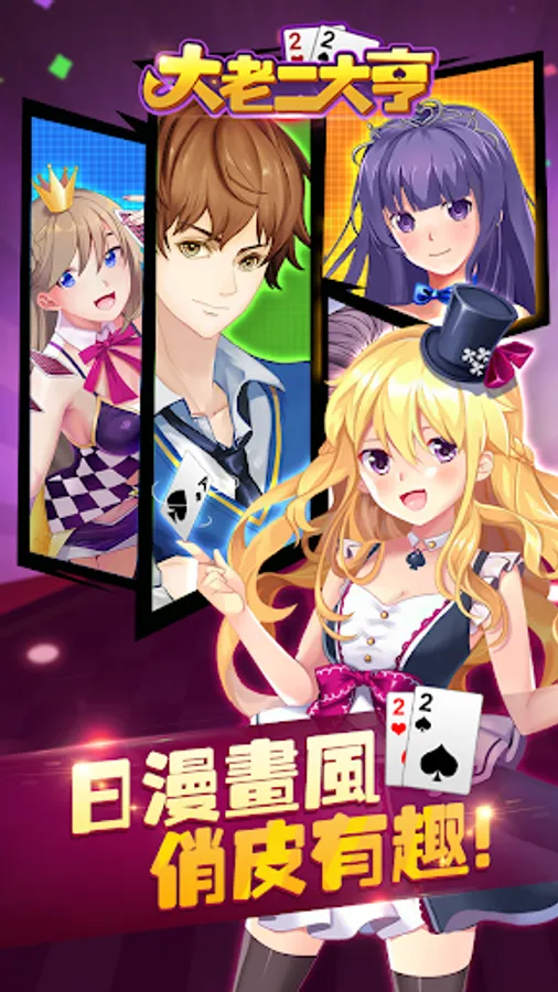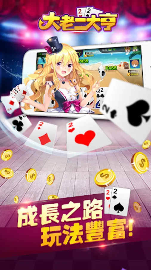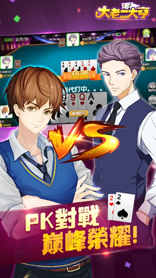 正宗台灣大老二 (Big 2) 玩法,簡單輕鬆易上手,娛樂性強,老少皆宜。任務豐富有趣。馬上來與全球玩家一決高下,登上競技排行榜寶座證明自己才是真正的大老二大亨。