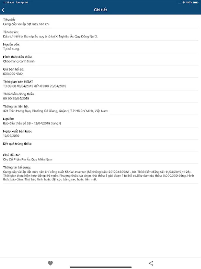 - Summary of bid information by investors, by geographical location, by each winning bidder, by industry ...