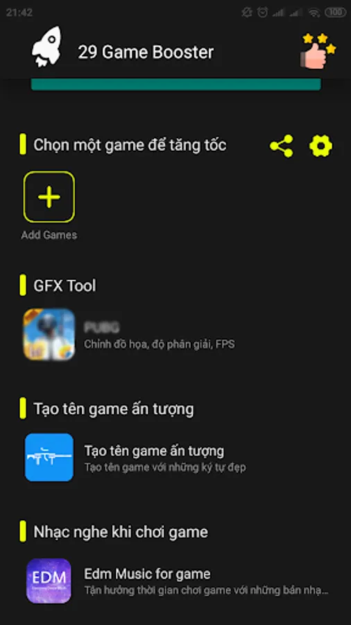 - Game booster : boosting game with special function reduce lag when play game, clean ram, boosting ram