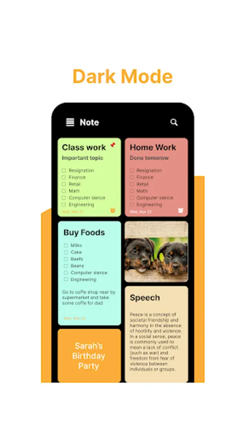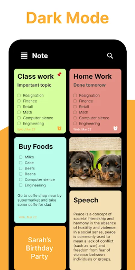 Notepad is a good note app that supports color notes. Take notes with different note colors or awesome note themes. Notepad writer customizes notebooks with different themes. Choose your themes in this free note taking apps and make your note app more organized!