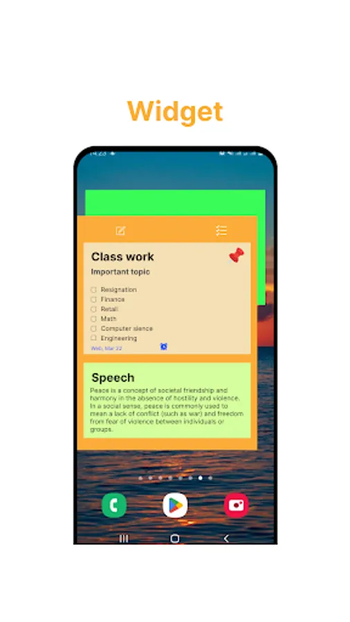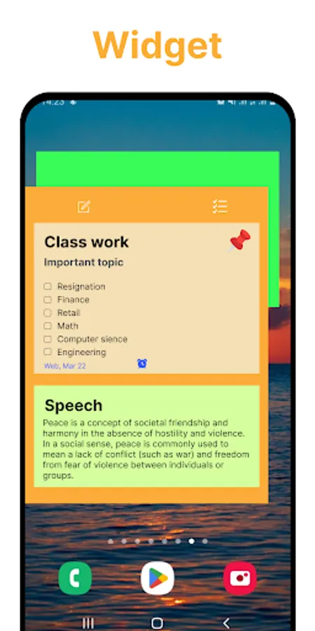 The sticky notes widget help write quick notes. Easy to add note widget as a note widget with various color note widget themes. Access your sticky notes free on homepage. Customize the sticky notes widget to help you work better, clearer on tablet.