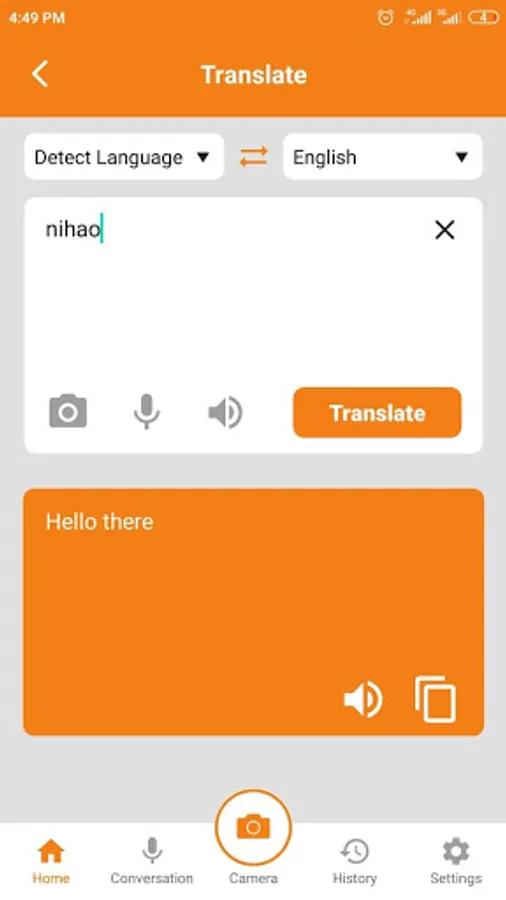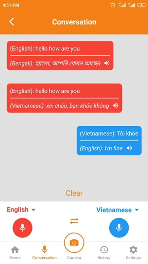 - Conversation : you cam take a conversation with foreigner by using this app, this function using speech to text to take input and then translate it and then using text to speech to read out loud the translate result.