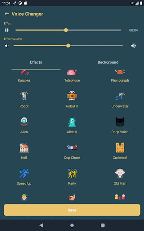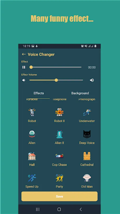 - Voice changer app supports many effects.