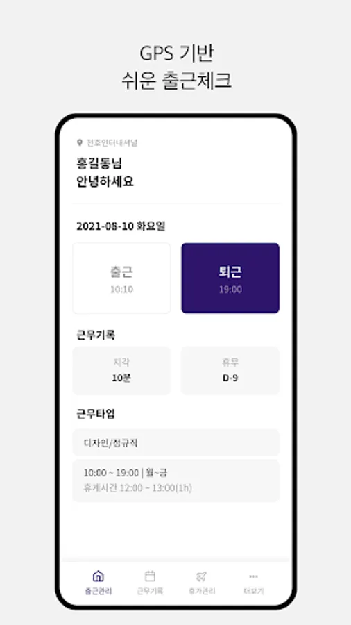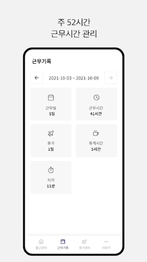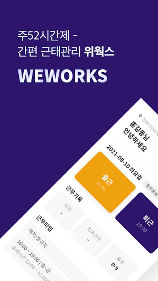 Check the working days, working hours, vacations, breaks, and tardy time by week and manage it according to the 52-hour week system. You can also manage individual work schedules in Weworks!