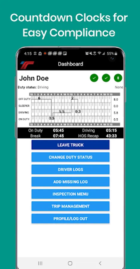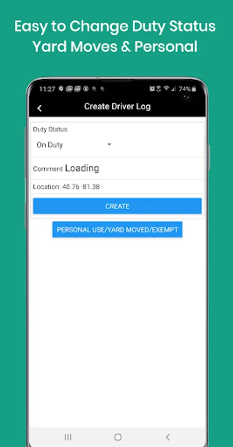 Simple duty status change. Changing your duty status from the drop down is simple and you can enter comments as needed. Your duty status will automatically change when you start driving, making it automatic for tracking drive time.