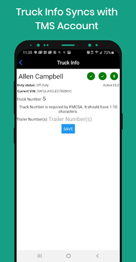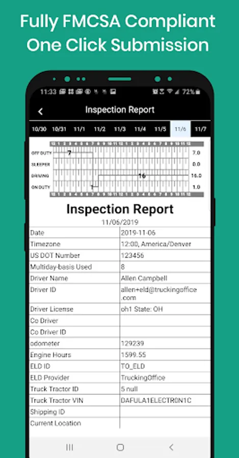 Roadside Inspection - there are three methods of supplying the inspection data to a roadside inspector. You can send via email, send it to the DOT via web service, or you can view the information on your phone.